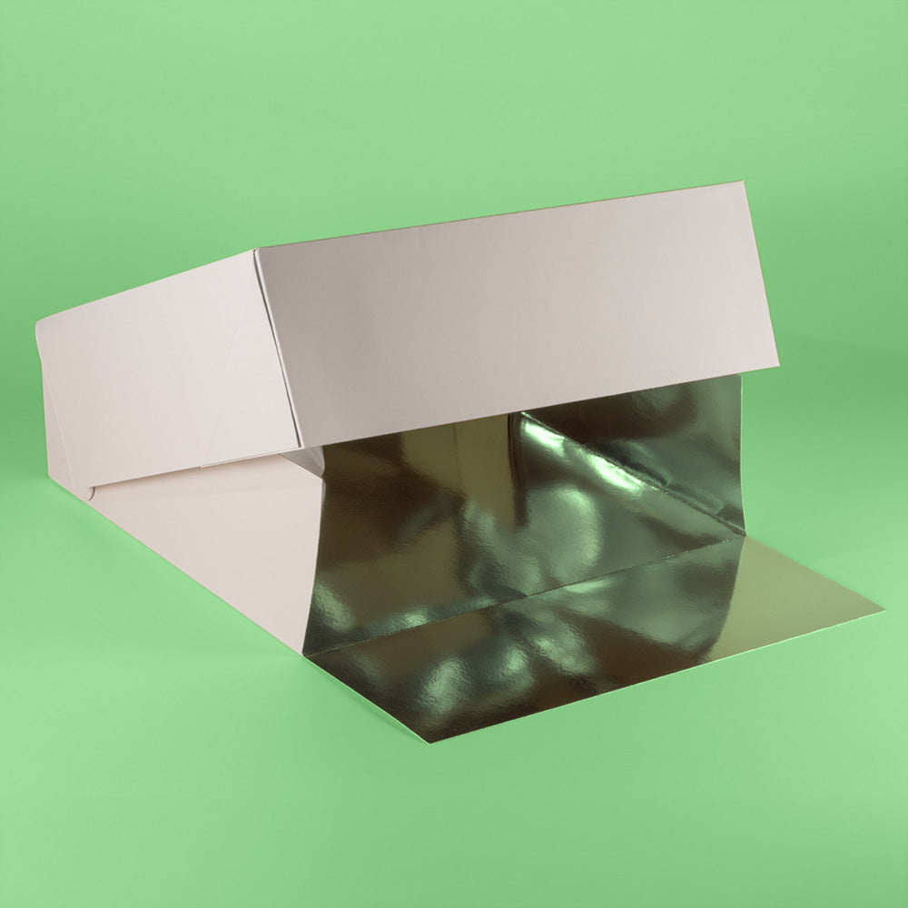 Interno Argento Alimentare: Grazie alla plastificazione interna in argento, questa scatola è idonea al contatto diretto con gli alimenti. Non hai bisogno di inserire vassoi o cabaret aggiuntivi, risparmiando tempo e costi.